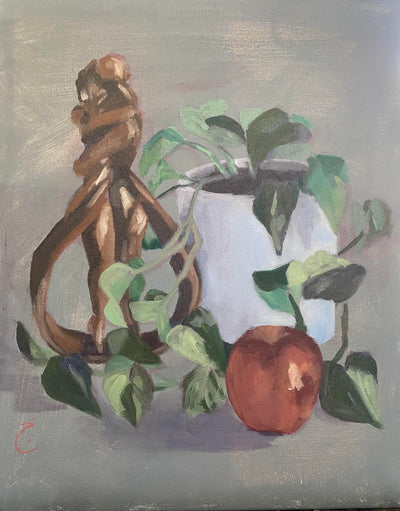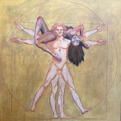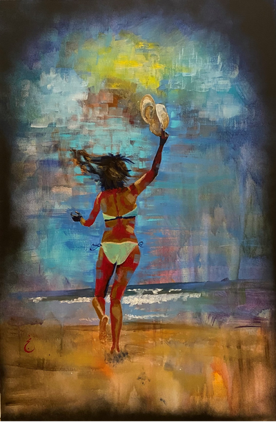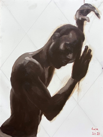 Before creating this piece, I drew parallel lines to give myself a guidance for the figure’s angles and the content of the painting. By the end, I left the lines to add depth to the painting; hence the name, parallel space.